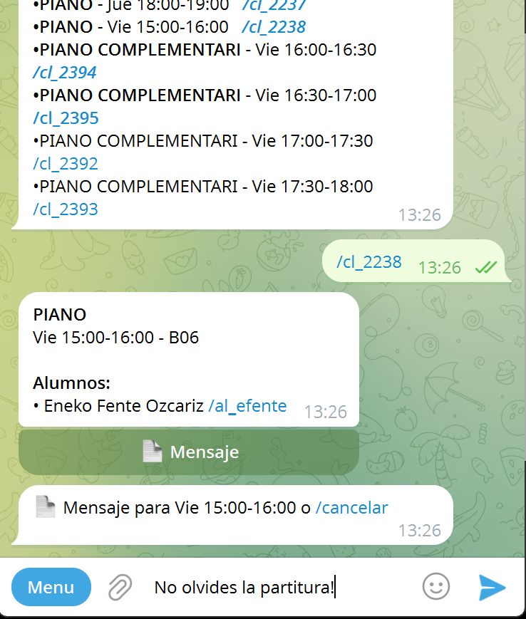 Integración con Horarios de clases. Fichaje desde web y Telegram